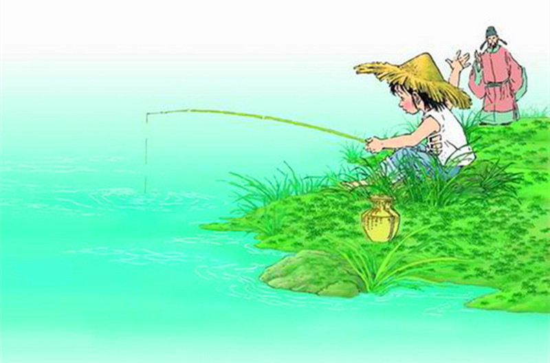 赏析:这个头发蓬乱的山野孩子,熟知鱼儿喜欢阴湿水域的特点,又怕响声惊动鱼群,便选择人迹罕至、阳光难照的草丛作钓位,不拘形迹专心致志钓鱼。栩栩如生的童钓形象跃然纸上,尤其对问路人故不作应的神态,更让读者忍俊不禁、难以忘怀。