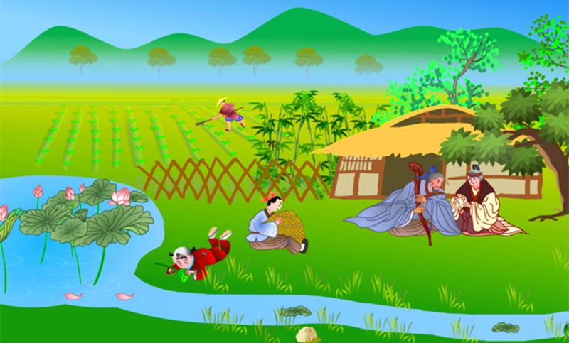 赏析:那些孩子们,他们不会耕也不会织,却也不闲着。他们从小耳濡目染,喜爱劳动,于是“也傍桑阴学种瓜”,也就在茂盛成阴的桑树底下学种瓜。这是农村中常见的现象,却颇有特色。